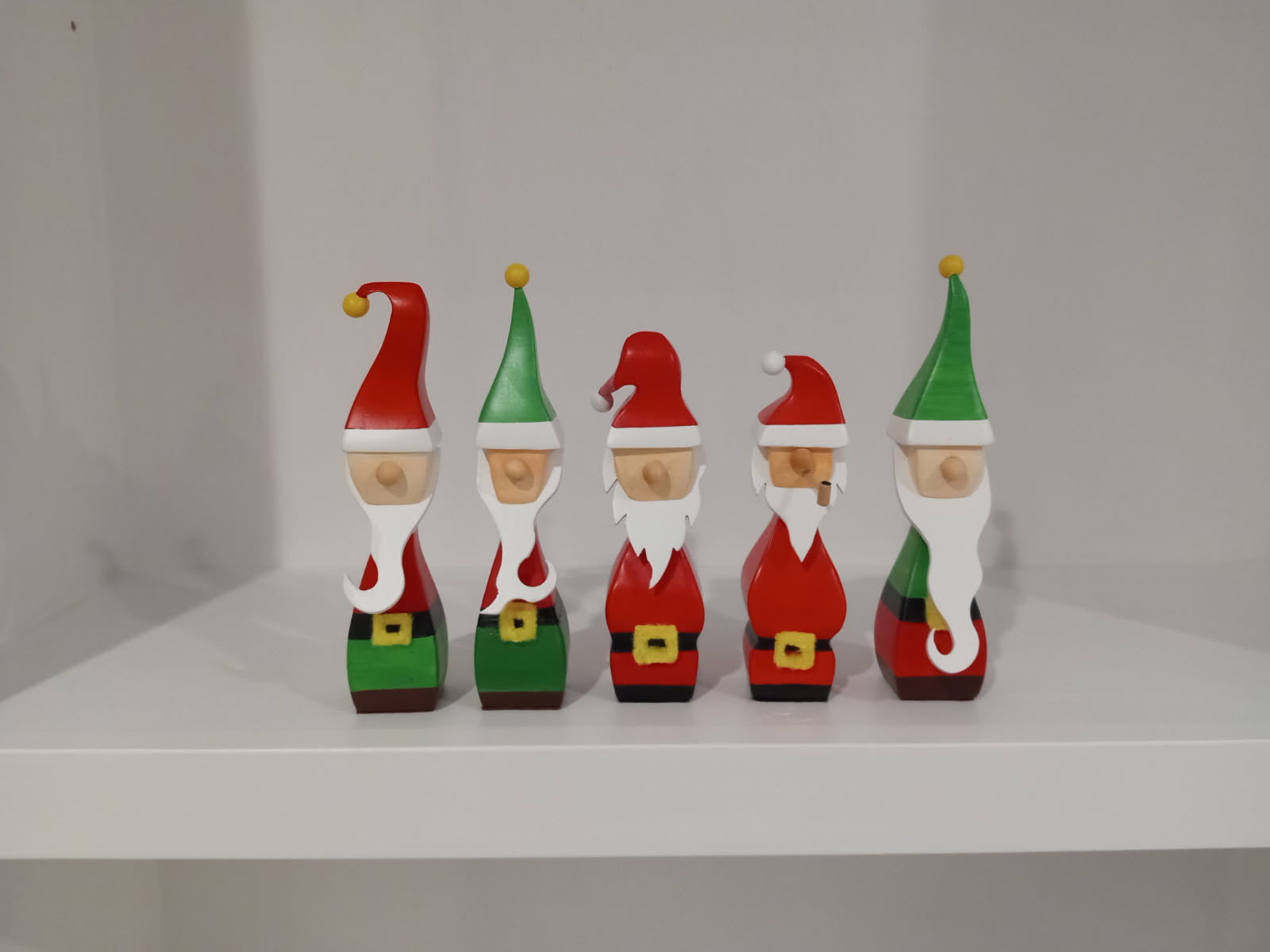 Handcrafted Cedar Christmas Elves & Santa Figurines Decorations